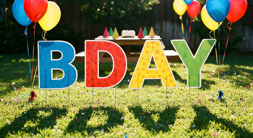SPELL - IT - OUT! Be the cheerleader for your next party! Let the whole neighborhood know all about your special occasion with custom yard signs. These full color large yard letters can be rearranged to help celebrate birthdays, homecomings, anniversaries and even welcome in a new baby boy or girl. Begin your unique message today by choosing a design option below!