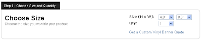 The first step is to select the banner size and quantity from the drop down menus. You can do any size banner up to 16 feet by 50 feet. Our most common sizes for birthday banners are 3' x 6' and 4' x 8' banners.