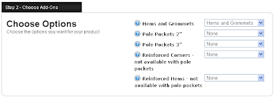 The next step is to choose your banner options. Standard finishing is hems and grommets - this is the recommended finishing if you are going to be hanging the banner. We also offer pole pockets. If you are using the birthday banner indoors don't select the reinforced hems or reinforced corners options.