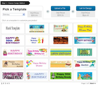 There are three ways you can order birthday banners online. You can pick a template to customize, upload a file you have created, or have a graphic designer design the banner for you. We will be discussing the picking a template and designing the banner in the online designer.