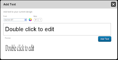 You can edit the text on the banner or you can add new text by clicking on the "Add TEXT" button. When you click on the box it will create a text box in the designer. Double click on the text box to edit the text. You can change the font from the drop down menu, change the color by using the color wheel and edit the text by typing in the box. Click on the "Add Text" when you are done.