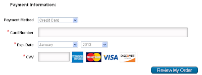 Once you are on the checkout page, enter all of your billing information. When you scroll down, the payment information is set to "Credit Card" by default.