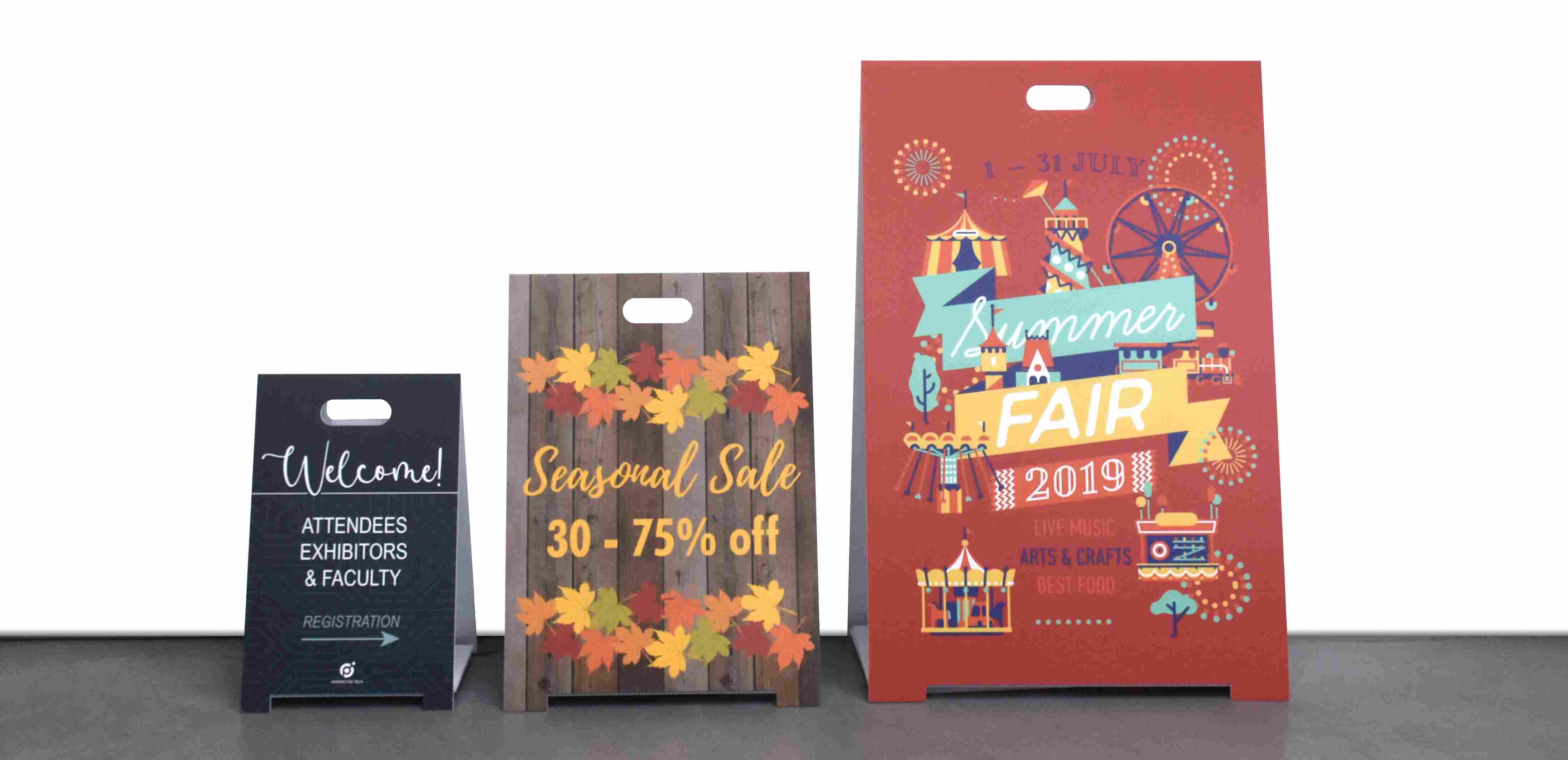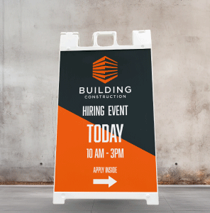 The materials used in sidewalk signs are essential for longevity and weather resistance. Typically, these signs are made from 4 millimeter corrugated plastic. It’s both water and weather resistant, requiring little to no maintenance.
